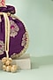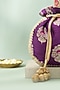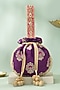 Featuring a violet potli in handwoven raw silk base with lace and cutdana ball tassel detailing. It has a poly satin lining, including zardosi and sequins embellished handle. Whether you're dressing up for a special occasion or adding a dash of elegance to your traditional look, it is an ideal accessory to complete your ensemble.