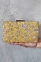 Featuring a yellow clutch in poly silk base with floral embroidery. It has a poly satin lining and a golden metal sling.
