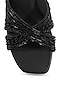 Featuring a black heels in satin base with sequins, tube beads and cutdana embellishments. It has a tunit sole, microsuede lining, including 2-inch block heels. Perfect wear for mehendi functions, cocktail nights, engagement or wedding ceremony where comfort meets statement style.