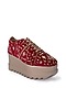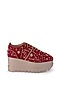 Crimson Red Velvet Embellished Wedge Sneakers