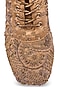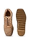 Featuring a pair of gold sneakers in satin base with zardosi, pearls and sequins hand embroidery. It has a faux leather lining and PU underlining, including 3.25-inch heels. From the first party of the season, wedding ceremonies to a grand festive soiree, these sandals will ensure effortless elegance in every step.