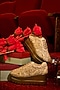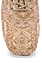 Featuring a pair of gold sneakers in satin base with cutdana, zari, beads and sequins hand embroidery. It has a faux leather lining and PU underlining, including 3.25-inch heels. From the first party of the season, wedding ceremonies to a grand festive soiree, these sandals will ensure effortless elegance in every step.