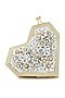 Featuring an ivory heart clutch in metallic base with floral, pearl and bead embellishments. It has a suede lining, a chain strap and a click closure. Carry it as a statement piece with traditional attire for weddings, events, or festive celebrations.