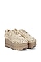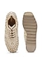 Featuring a pair of off-white sneakers in satin base with beads, mirrors, dabka, cutdana and sequins hand embroidery. It has genuine leather lining and 3.25-inch heels.
