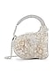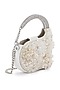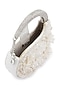 Featuring a white clutch with pom-pom and crystal embellishments. It has a suede lining, a chain strap and a button lock closure. Carry it as a statement piece with traditional attire for weddings, events, or festive celebrations.