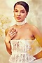 Featuring a white choker necklace studded with manufactured pearls, set in brass.