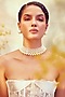 Featuring a white knit choker necklace studded with manufactured pearls, set in brass.