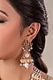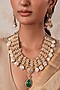 Featuring a gold finish long temple necklace studded with kundan polki and emerald stones, set in brass. It is paired with a matching pair of earrings. Perfect wear for festive occasions or navratri celebrations.