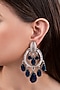 Featuring a pair of white finish dangler earrings tudded with zircons and blue stones, set in brass. Perfect wear for festive occasions or navratri celebrations.