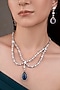 Featuring a white finish necklace studded with zircons and sapphire stone, set in mixed metal. It is paired with a matching pair of earrings. Perfect choice for festive celebrations, wedding or sangeet ceremonies.
