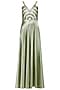 Featuring a green embroidered satin gown with thigh high slit.