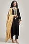 Featuring a black kurta in silk chanderi base with zari, cutdana, resham, sequins hand and machine embroidery. It is paired with scallop hem palazzo pants and a beige chanderi dupatta. Accentuate it with pearl jhumkas and embellished juttis for an elegant traditional look, perfect for festive gatherings and cultural celebrations.