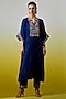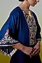 Featuring a blue kaftan style kurta in silk chanderi base with embroidery. It is paired with embroidered palazzo pants. Accentuate it with statement earrings and heels for festive occasions.