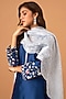 Featuring a blue kurta in silk chanderi base with cutdana, pearls, beads, resham and sequins embroidery, including scalloped sleeves and v-neckline. It is paired with matching embroidered palazzo pants and a light blue chanderi tissue dupatta.