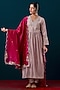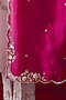 Burgundy Silk Chanderi Floral Scalloped Embroidered Dupatta