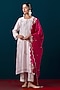 Featuring a burgundy dupatta in silk chanderi base with floral and motif scalloped embroidery. Style it with a kurta set, dangler earrings and pair of juttis for festive brunches, family gatherings or pooja ceremony.