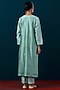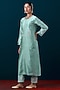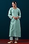 Featuring a dull blue kurta in silk chanderi base with floral motif embroidery. It is paired with embroidered hem pants. Accentuate it with dangler earrings and pair of juttis for festive brunches, family gatherings or pooja ceremony.
