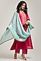 Featuring a fuchsia kurta in silk chanderi base with zari, cutdana, resham, sequins hand and machine embroidery. It is paired with scallop hem palazzo pants and a blue chanderi dupatta. Accentuate it with pearl jhumkas and embellished juttis for an elegant traditional look, perfect for festive gatherings and cultural celebrations.
