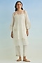 Ivory Mul Chanderi Thread Embroidered High-Low Kurta Set