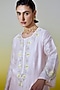 Featuring a light pink kurta in silk chanderi base with embroidery. It is paired with embroidered palazzo pants. Accentuate it with statement earrings and heels for festive occasions.