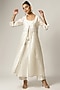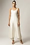 Featuring an off-white jacket in silk chanderi base with cutwork leaves, cutdana, dabka and latkans hand embroidery. It is paired with matching embroidered pants having sequins and cutdana embroidery, including spaghetti kurta.