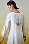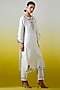 Featuring an off-white kurta in silk chanderi base with embroidery. It is paired with embroidered palazzo pants. Accentuate it with statement earrings and heels for festive occasions.