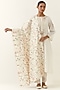 Featuring an off-white kurta in silk chanderi base with resham, sequins, cutdana and pearls hand embroidery, including placket detailing. It is paired with matching embroidered palazzo pants and a cotton scalloped dupatta having floral motifs embroidery.