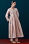 Featuring an old rose kurta in silk chanderi base with gathered silhouette and floral embroidery, including handmade tassels detail. It is paired with embroidered hem pants. Accentuate it with dangler earrings and pair of juttis for festive brunches, family gatherings or pooja ceremony.
