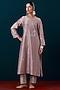 Featuring an onion pink kurta in silk chanderi base with floral motif embroidery. It is paired with embroidered hem pants. Accentuate it with dangler earrings and pair of juttis for festive brunches, family gatherings or pooja ceremony.