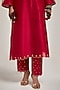 Featuring a red kurta in silk chanderi base with floral motif, sequins, resham, zari and cutdana embroidery. It is paired with embroidered pants having scalloped hem. Accentuate it with dangler earrings and heels for a festive occasion or pooja ceremony.