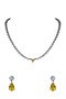 Featuring a white finish necklace studded with american diamonds and yellow drops, set in mixed metal. It is paired with a matching pair of earrings.
