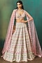 Featuring an aqua lehenga in dupion silk base with mirror, sequins, and cutdana embroidery. It is paired with a matching blouse and a pink net dupatta.