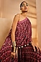 Aneesh Agarwaal features a mesmerizing Black One-Shoulder Kaftan Set that captivates with its elegance. The eye-catching piece is crafted in crepe silk with japanese bugle beads hand embroidery. It is paired with gharara pants having cowry shells and antique coins. Accessorize the designer kaftan set with statement jewellery and heels for a wedding/engagement/sangeet ceremony.