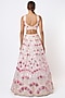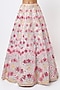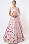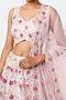 Featuring a blush pink lehenga in net base with thread, mirror, and foil applique embellishments. It is paired with a matching blouse and a dupatta.