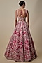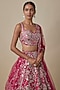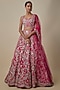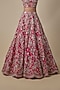 Featuring a cherry red lehenga in organza base. It is paired with a blouse and a net dupatta. Accentuate it with statement earrings and heels for weddings or a bridal look.