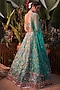 Featuring an emerald green lehenga in pure organza base with foil and mirror floral embroidery. It is paired with a matching blouse and a net dupatta.