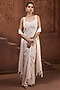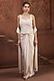 Featuring an ivory sleeveless corset in organza base with sequins, pearl and 3D floral embroidery. It is paired with a satin draped dhoti-style skirt and satin dupatta having pearl tassel detailing. Accentuate it with dangler earrings and heels for cocktail events or wedding ceremonies.