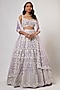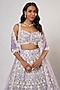 Featuring a lavender lehenga in organza base with pearl embroidery. It is paired with a blouse and a net dupatta. Accentuate it with statement earrings and heels for weddings, engagements or sangeet ceremonies.
