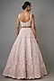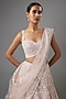 Featuring a light pink lehenga in organza base with embroidery. It is paired with a blouse and a dupatta. Accentuate it with statement jewellery and wedges for wedding ceremonies.