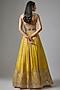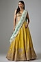Featuring a lime green lehenga in silk base with embroidery. It is paired with an embroidered blouse and a dupatta. Accentuate it with statement earrings and heels for a wedding or an engagement look.
