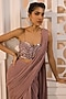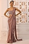 Featuring a mauve pre-draped ruffled saree in shimmer chiffon base. It is paired with an organza blouse having beads, sequins and bugle hand embroidery. Accentuate it with statement chandelier earrings, a sleek clutch and embellished heels for a stylish ensemble, ideal for cocktail evenings, reception celebrations or glamorous evening events.