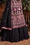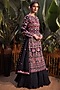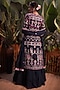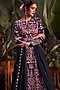 Featuring a navy blue kurta in organza base with gota, mirror, and foil applique embroidery. It is paired with a matching flared skirt and a scalloped dupatta.
