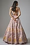 Featuring an old rose lehenga in silk base with embroidery. It is paired with an embroidered blouse and a dupatta. Accentuate it with statement earrings and heels for a wedding or an engagement look.