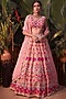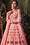 Featuring a pink lehenga in organza base with jaal floral and applique embroidery. It is paired with a matching blouse and a scalloped dupatta.