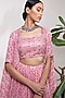 Featuring a pink lehenga in georgette base with mirror and thread embroidery. It is paired with a matching blouse and cape.