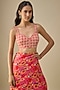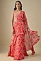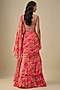 Featuring a pink saree in chinon chiffon base. It is paired with a blouse and a belt. Accentuate with statement jewellery and heels for a sangeet or cocktail ceremony.