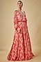 Featuring a red top in satin base with print. It is paired with a skirt. Accentuate it with statement jewellery and heels for festive occasions or wedding ceremony.