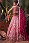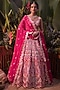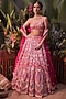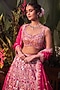 Featuring a rani pink lehenga in organza base with gota and foil embroidery. It is paired with a matching blouse and a dupatta.