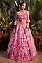 Featuring a rani pink lehenga in silk base with gota, mirror, and thread embroidery. It is paired with a matching blouse and a net dupatta.