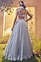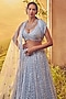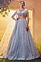 Featuring a sky blue lehenga in tulle base with japanese bugle beads and sequins embroidery. It is paired with a blouse and a cutwork dupatta. Accentuate this lehenga set with ethnic dangler earrings and block heels for a bridal look.